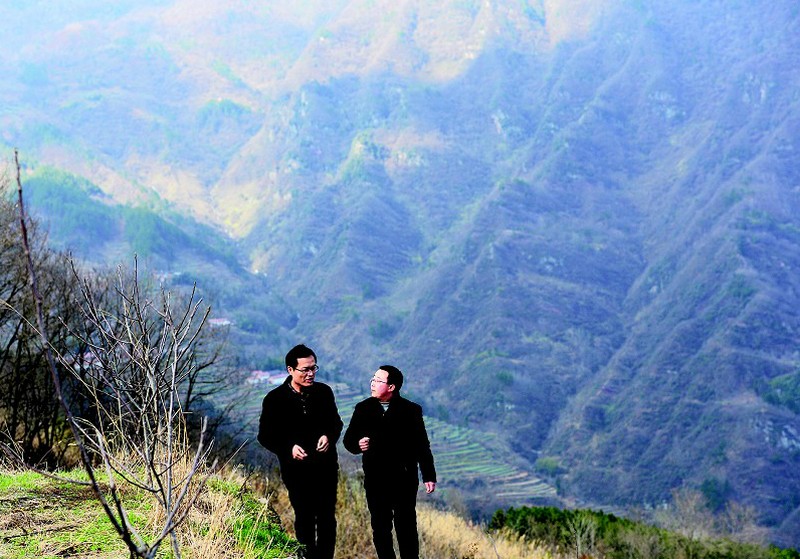 “感動中國年度人物”徐本禹關心張義波的核桃種植情況。