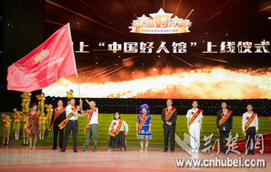 十位“中國好人”代表依次傳遞“中國好人榜”主題旗幟 通訊員胡鵬 攝