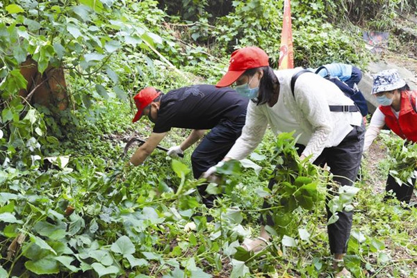 8月25日,西陵區(qū)鎮(zhèn)鏡山小學(xué)的老師在社區(qū)積極參加義務(wù)勞動,清理垃圾死角、違規(guī)菜地、野廣告等。 記者王昌明 通訊員侯秀英 攝