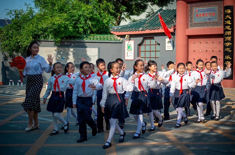 蕭楚女是中國共產黨早期的革命家和著名的馬克思主義理論家,他的光輝事跡和革命精神,是教育少年兒童的寶貴資源。學校專門建設了“蕭楚女生平展廳”,成為開展愛國主義教育和革命傳統教育的重要陣地。一是上好新生入學第一課。每一名新生進校后的第一課,就是參觀蕭楚女展廳,了解蕭楚女生平事跡,緬懷其豐功偉績,學習其革命精神。二是組織烈士塑像前宣誓。學校少先隊員入隊時,先要在蕭楚女烈士塑像前宣誓:繼承蕭楚女的革命精神,沿著蕭楚女的光榮路程,時刻準備報效祖國和人民。三是爭創“蕭楚女中隊”。蕭楚女展廳也是學校少先隊“蕭楚女中隊”的活動基地。大隊部以值周活動為載體,開展爭創“蕭楚女中隊”活動,吸引學生參加。四是人人爭當“小講解員”。學校大隊部每年在五年級優秀廣播員中開展“爭當金牌講解員”活動,通過競聘選拔一批優秀學生擔任展廳小講解員。所有參觀活動,均由“金牌講解員”全程負責展廳和校園文化的解說。學校圍繞蕭楚女革命精神開展的國家級課題《蕭楚女精神引領下的少先隊愛國主義教育主題活動研究》于2019年9月結題。