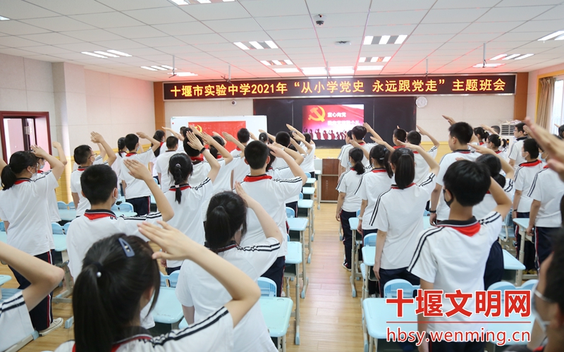 十堰市實驗中學開展“從小學黨史 永遠跟黨走”主題班會。