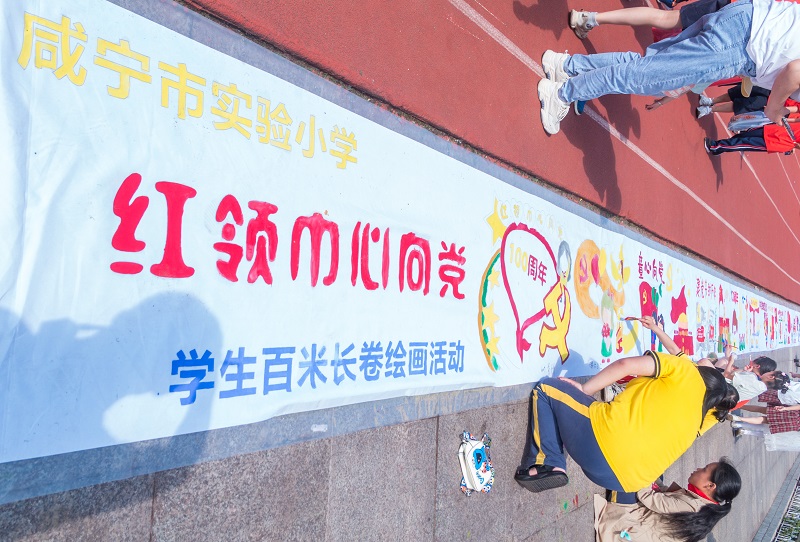 紅領(lǐng)巾心向黨學(xué)生百米長卷繪畫活動(dòng)
