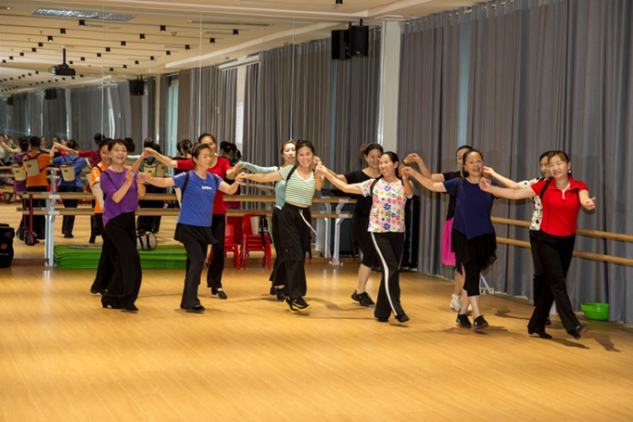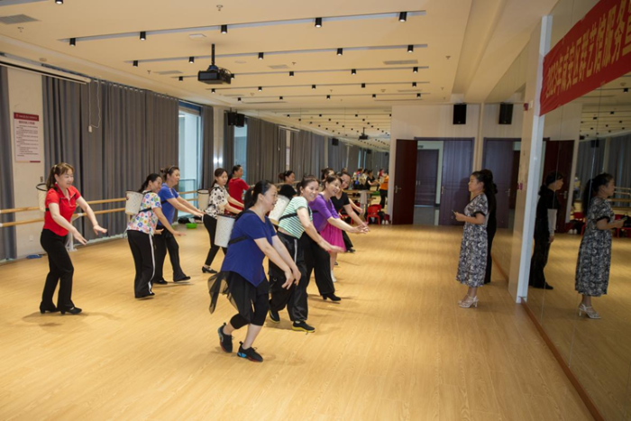7月22日,正在湖北省咸寧市咸安區(qū)新時代文明實踐中心里排練舞蹈的市民。新華網(wǎng) 鐘奕 攝