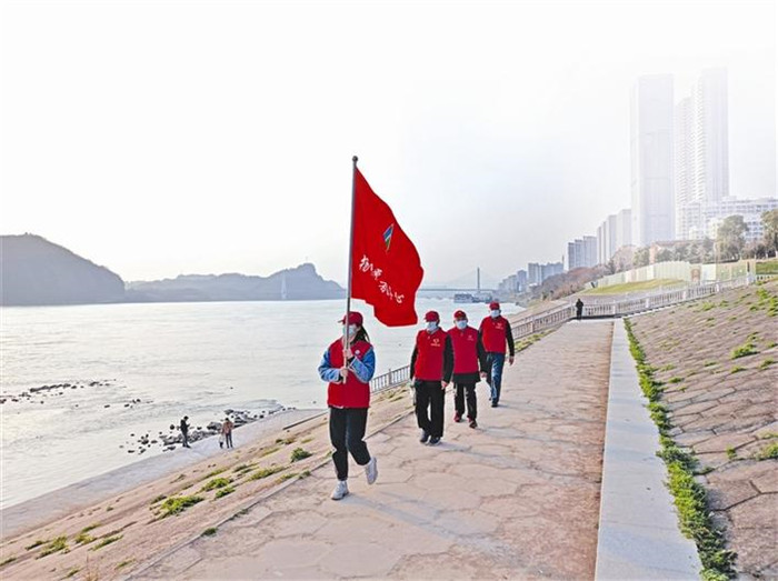 志愿者在長江邊巡邏。圖片來源:宜昌文明網