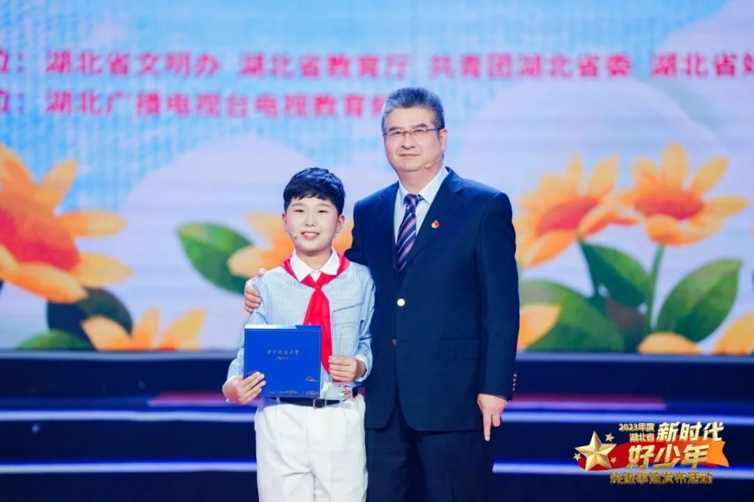 湖北省教育廳二級巡視員何愛軍、共青團湖北省委副書記徐本禹為湖北省“新時代好少年”頒獎