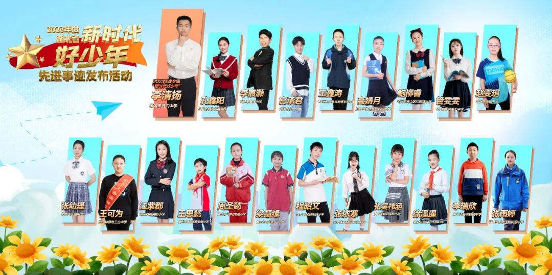 經過各地各部門廣泛發動、層層推薦,省直主辦單位聯合評審、綜合評議、網上公示等程序,最終共有來自全省各地的20名優秀少年脫穎而出,榮獲2023年度湖北省“新時代好少年”榮譽稱號?;顒蝇F場發布了他們的先進事跡,并為榮獲2023年度全國“新時代好少年”的黃岡武穴中學李清揚以及湖北“新時代好少年”頒發了獎杯和榮譽證書。