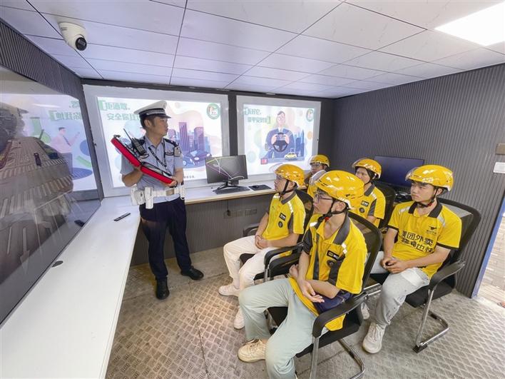 交警給外賣小哥講解自助學習艙的相關功能。 三峽商報通訊員向俊杰 攝