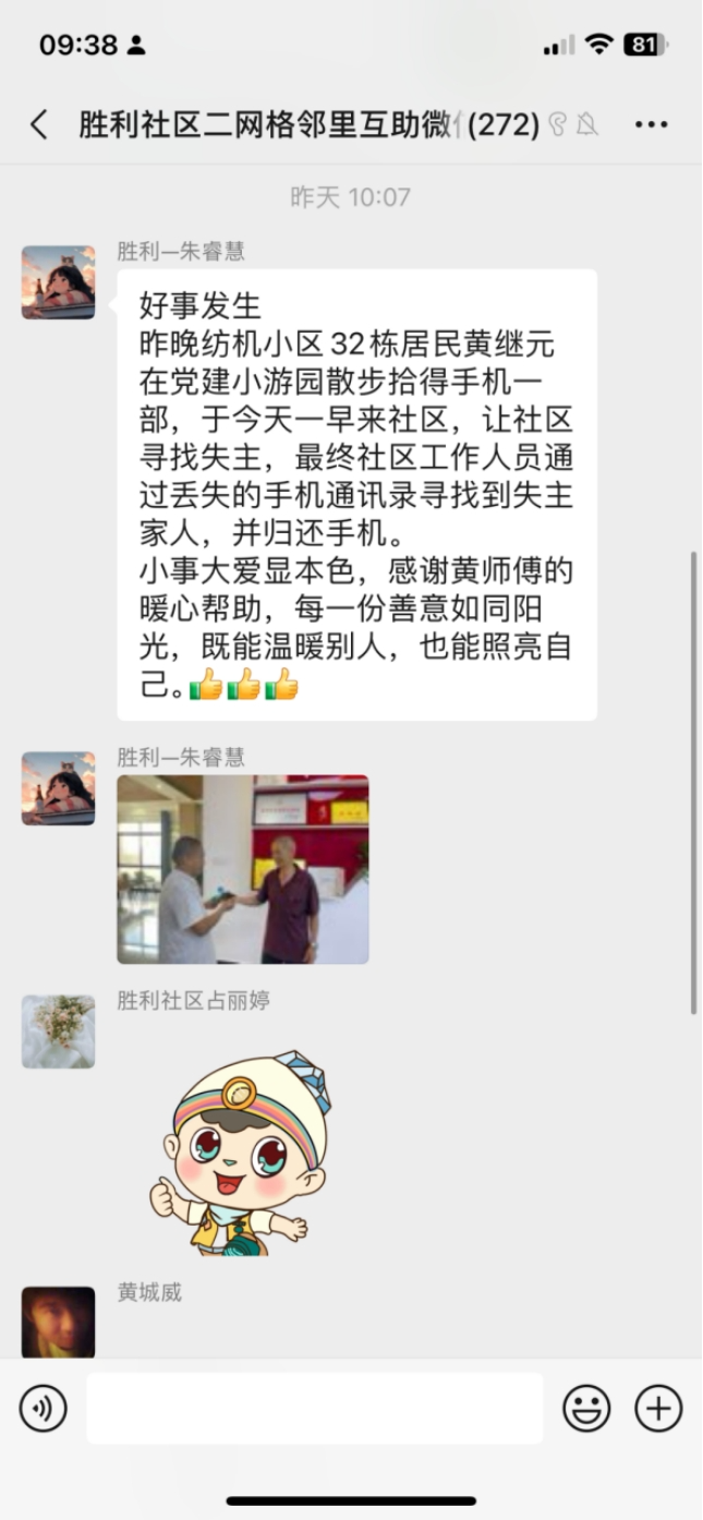 今年3月份,居民閆蕊琴住院,生活不能自理。她老伴去世較早,子女不在身邊,住在同一樓棟的黃菊華伸出援手,經(jīng)常給她送衣物、飯菜,還主動(dòng)幫她辦理醫(yī)保報(bào)銷手續(xù)。小區(qū)居民紛紛為之點(diǎn)贊。