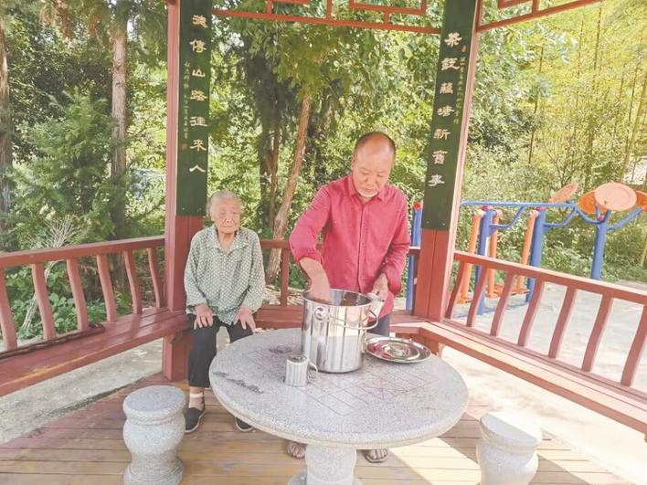 藕塘村村支書徐德煌介紹,他十幾歲上山砍柴的時候,經常喝徐桂梅老人的涼茶。2003年到2008年期間,他做木材生意,經常開車經過桂梅亭。每次聽到有人經過,老人都會出門查看,請他們喝茶。“這么多年來,不管是認識的、不認識的,她對每個人都是如此。哪家的小孩沒人帶,她也會臨時幫忙照顧。”徐德煌說,“其實她家的經濟條件并不好,是低保戶,她能堅持這么多年送涼茶,非常不容易。”