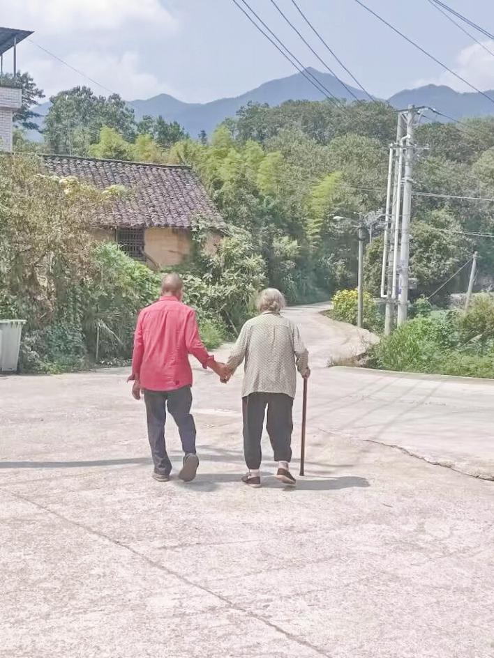 94歲的徐桂梅拄著拐杖,從數十米外的家里緩步走到涼亭,揭開茶缸的蓋子,檢查里面的茶水是否夠喝。她頭發花白,臉上寫滿歲月的痕跡,但依然眼聰目明,精神矍鑠。