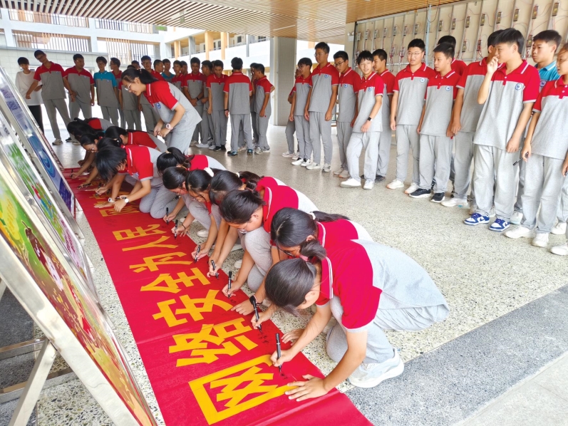 仙桃市利用主流媒體、互聯網平臺全媒體傳播,聚焦網絡安全意識、知識、技能的宣傳普及,營造濃厚宣傳氛圍。并在大型商場、小區等電子屏,全天候、高頻次播放網絡安全宣傳標語,提醒群眾時刻繃緊安全弦,從根源上共同構建安全、健康的網絡環境。圖為學生簽名承諾文明上網、安全上網。(仙桃日報 記者 黃蕓)