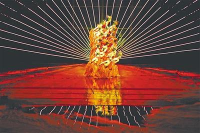 楊麗萍原創舞臺劇《荊楚映象》中的經典篇章《鳳鳴朝陽》精彩上演。