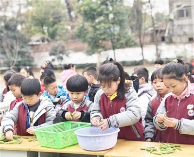 一年級的“剝豆小能手”賽場氣氛熱烈非凡。隨著老師一聲令下,小選手們迅速投入戰斗。一顆顆飽滿的豆子在稚嫩的小手中跳躍,豆莢外殼紛紛剝落。105班的黃國佑同學手法嫻熟,只見他輕輕捏住豆莢一端、小心翼翼地沿著縫線剝開。比賽結束時,看著面前滿滿一碗晶瑩的豆子,他自豪地揚起頭,向老師和同學們展示自己的勞動成果:“我長大了,能幫爸爸媽媽干活啦!”