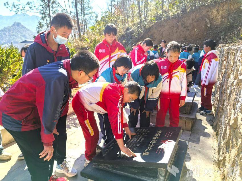 當年輕的手觸碰歷史豐碑,紅色基因在無聲傳承中煥發生機。一旁的老師們感觸頗深,掏出手機記錄下這一個個感人瞬間。陽光灑在孩子們專注的面龐上,與紀念碑上的金字交相輝映。