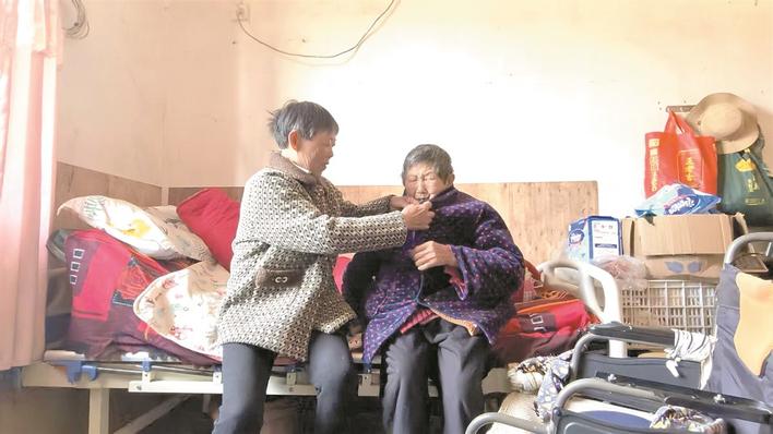朱美英習慣了這一切。十二年來的日日夜夜,她的生活基本上圍著婆婆張作英在轉。朱美英每天早早起床幫婆婆穿衣洗漱;中午,她先給婆婆煮上一碗面條,親自喂完后,才做自己的午餐。隔三岔五,她還會做上一頓婆婆喜歡的紅燒肉或者是沒有小刺的連拐魚。晚上,她和丈夫一起為婆婆擦洗身子,換紙尿褲……