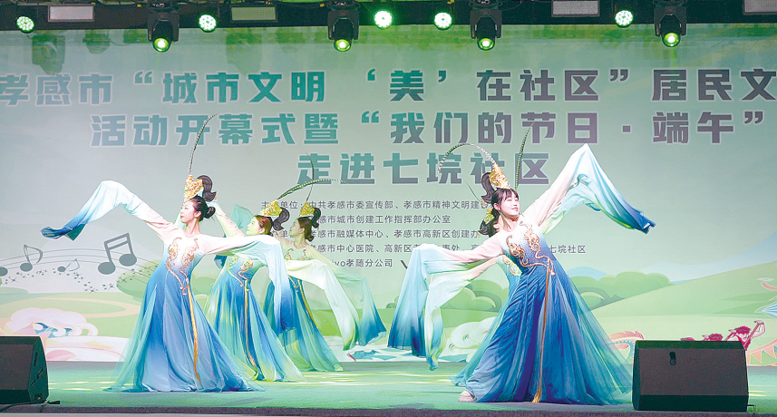 艾草飄香,粽葉傳情。5月29日,孝感東站廣場上粽香四溢,熱鬧十足,“城市文明‘美’在社區(qū)”居民文化節(jié)開幕式暨“我們的節(jié)日·端午”走進七垸社區(qū)活動在這里舉行。