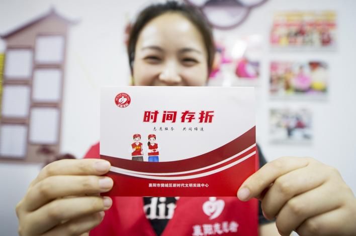 社區(qū)工作人員為轄區(qū)志愿者正式發(fā)放“時間存折”。
