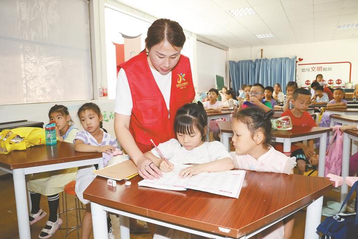 沙市區(qū)武德路社區(qū)開辦愛心托管班,邀請(qǐng)志愿者輔導(dǎo)孩子學(xué)習(xí)。