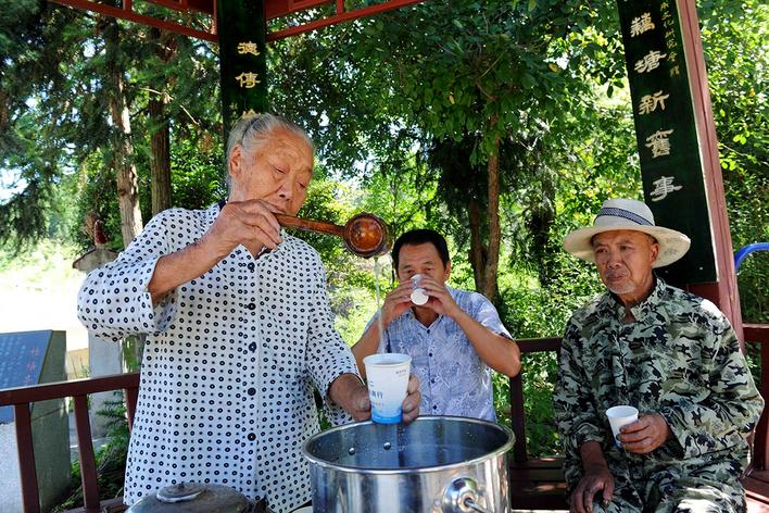 “涼茶奶奶”徐桂梅37年如一日給路人送茶,成為當?shù)丶言挕?(張大樂 攝)