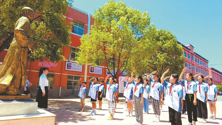 老河口袁沖小學(xué)在袁書(shū)堂紀(jì)念館開(kāi)展愛(ài)國(guó)主義教育。