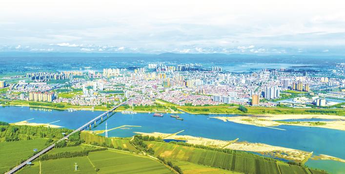 遠眺鐘祥城區,天藍水碧,風光宜人。