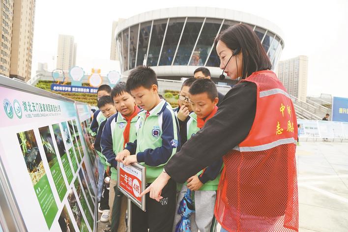志愿者開(kāi)展愛(ài)鳥(niǎo)護(hù)鳥(niǎo)科普宣傳。