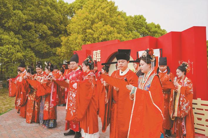 國(guó)風(fēng)集體婚禮引領(lǐng)文明新風(fēng)氣。