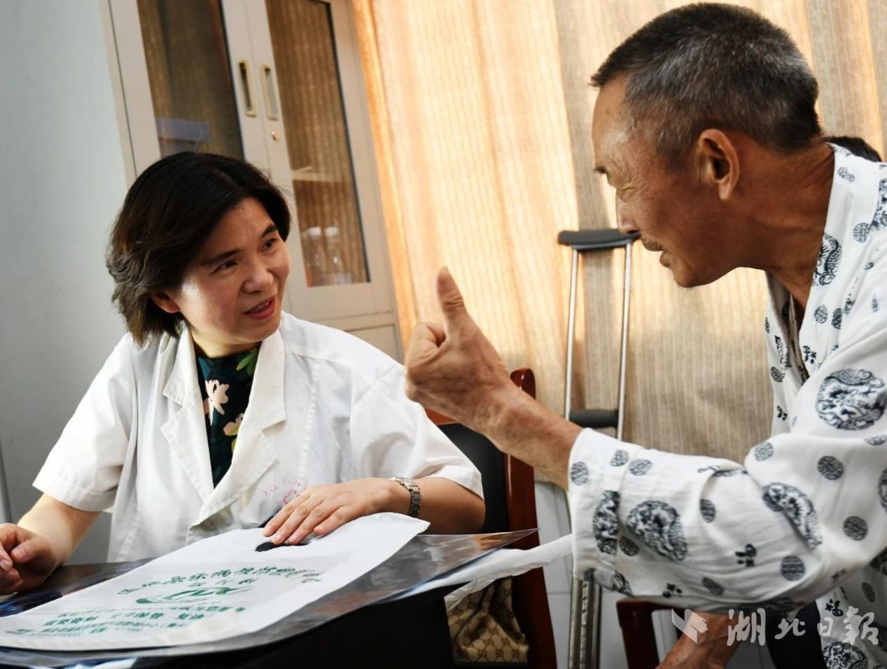 為擴(kuò)大幫扶半徑,2019年,杜榮輝牽頭成立“健康幫扶志愿服務(wù)隊(duì)”,323名醫(yī)護(hù)人員加入其中。團(tuán)隊(duì)足跡遍布湖北16個(gè)地市州,遠(yuǎn)赴3800公里外的新疆博樂,開展義診百余場(chǎng),惠及群眾超4000人次。