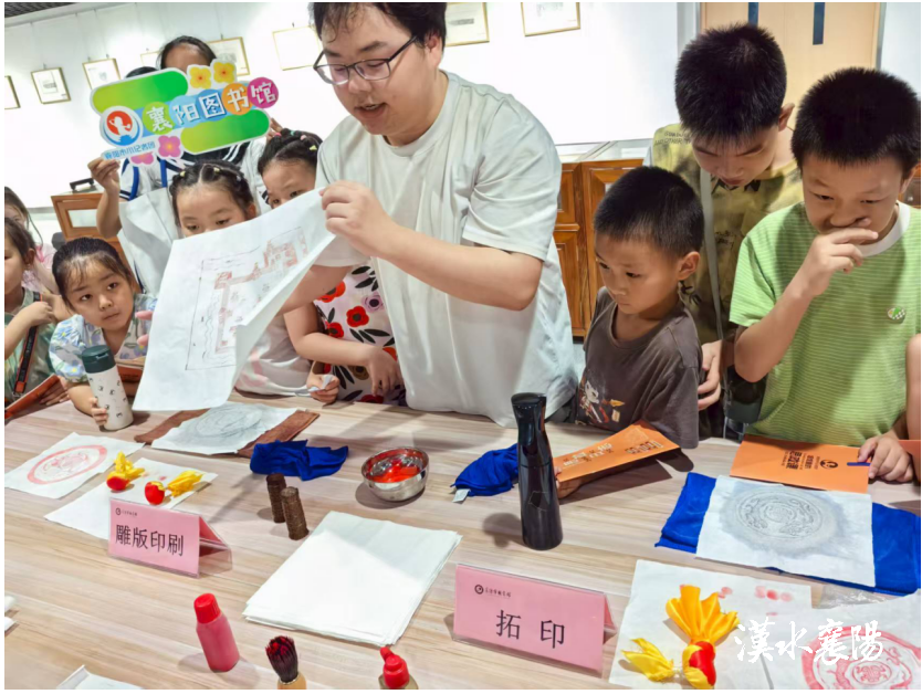 課后的古籍拓印體驗環節,讓小記者在襄陽市圖書館的文化浸潤中感受傳統技藝的魅力。拓印作為傳承文獻的傳統方式,與圖書館保存文獻的使命一脈相承。同學們分組開展古磚瓦傳拓實操,親手體驗“濕紙敷碑、輕敲入字、蘸墨拍刷、揭紙成拓”的全過程。在墨香與紙張的交融中,孩子們感悟到文化傳承的溫度,將對歷史的理解與對傳統的熱愛融入實踐,實現了從“認知”到“傳承”的深度升華,也切身體會到公共圖書館在保護、傳承文化遺產中的重要作用。(漢水襄陽)