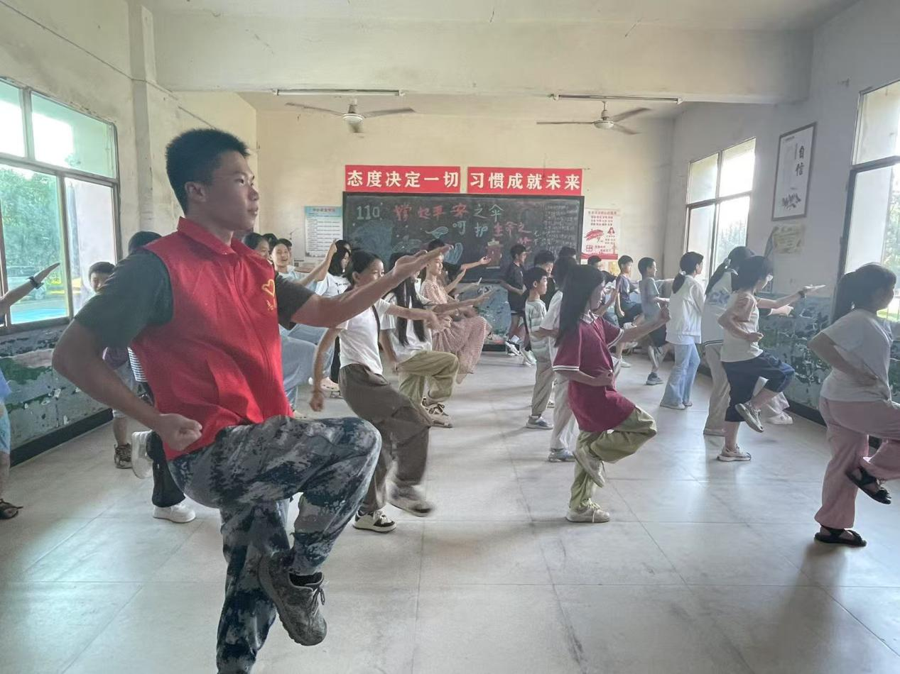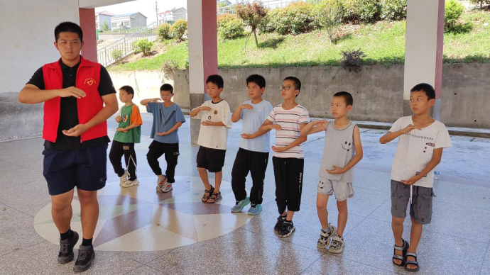 “老師,看我做的‘攬雀尾’像不像在順孔雀的尾巴?”十堰市鄖陽區譚山鎮中心小學三年級的義圩小朋友興奮地展示著動作。來自漢江師范學院外國語學院“向陽花”志愿服務隊的志愿者,將蘊含千年智慧的“太極拳”帶入鄉村課堂,數十名小學生在晨光熹微中凝神靜氣,一推一收間,感受著剛柔并濟的東方韻律,為活力校園注入了沉靜而深厚的文化力量。