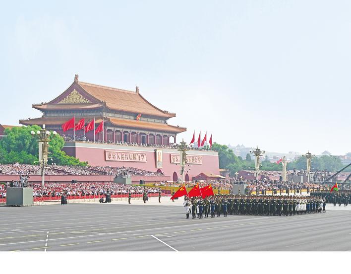 9月3日,紀念中國人民抗日戰爭暨世界反法西斯戰爭勝利80周年大會在北京天安門廣場隆重舉行。中共中央總書記、國家主席、中央軍委主席習近平發表重要講話。(新華社發)