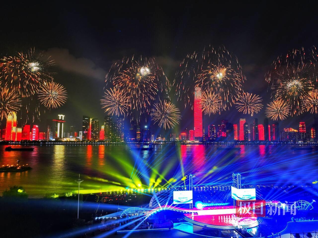 今晚,觀眾將欣賞到臨江而建的舞臺與壯闊江景完美融合的獨(dú)特景觀。在演出過程中,舞臺表演將與煙火表演、兩岸樓宇燈光秀、無人機(jī)編隊(duì)表演等相互配合,共同為大家?guī)怼敖丁妗祀H”三維交融的視覺體驗(yàn)。