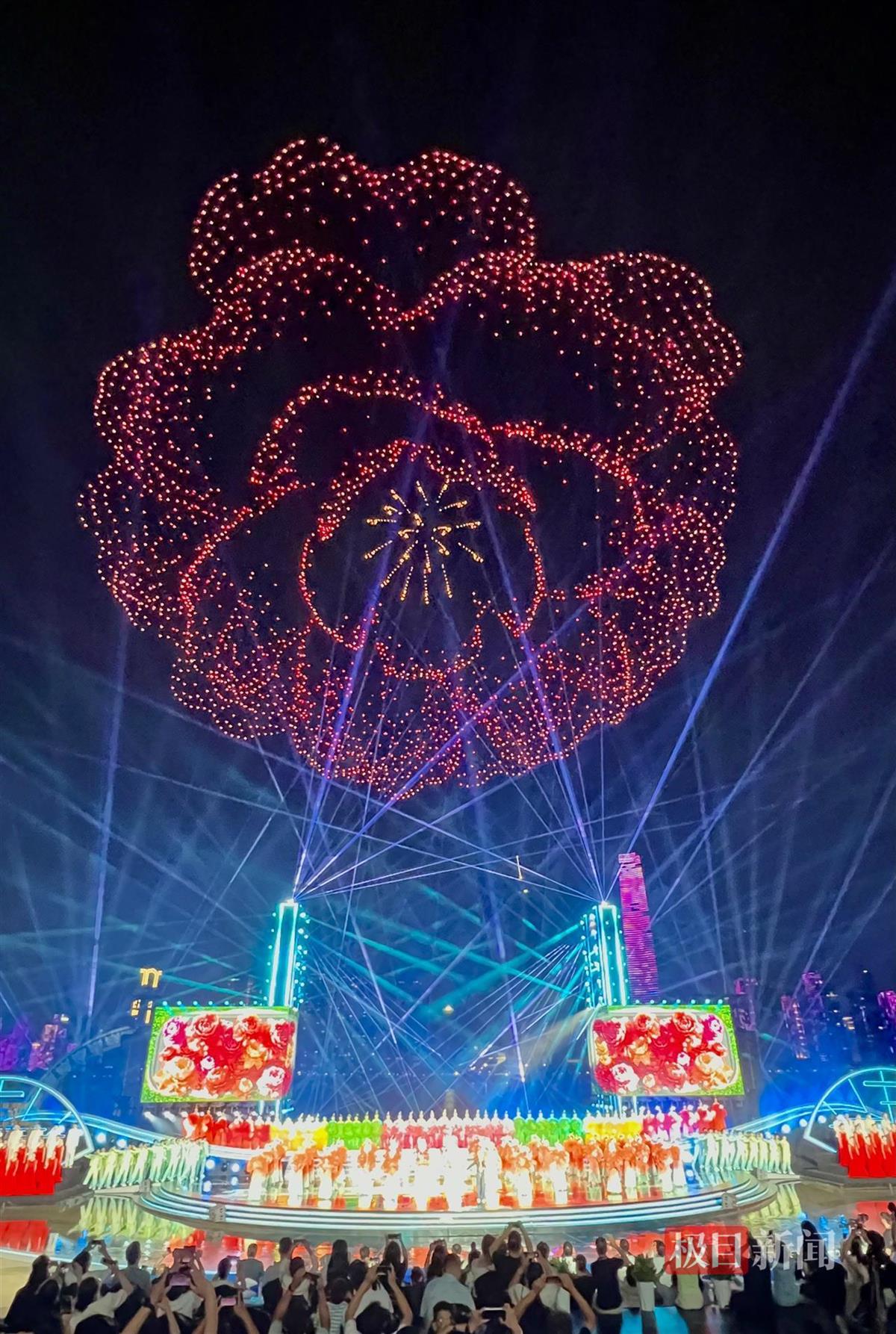 今晚的長江,將美翻、美炸、美爆——在長江大橋與長江二橋之間的江面上,8艘船只和1000架無人機(jī)將穿插燃放三輪煙花,另有3000架無人機(jī)表演光影秀,在夜空中呈現(xiàn)壯觀的立體效果;直至一朵巨大的富貴牡丹花騰空而起,照亮長江夜空,驚艷兩江三鎮(zhèn)四岸……