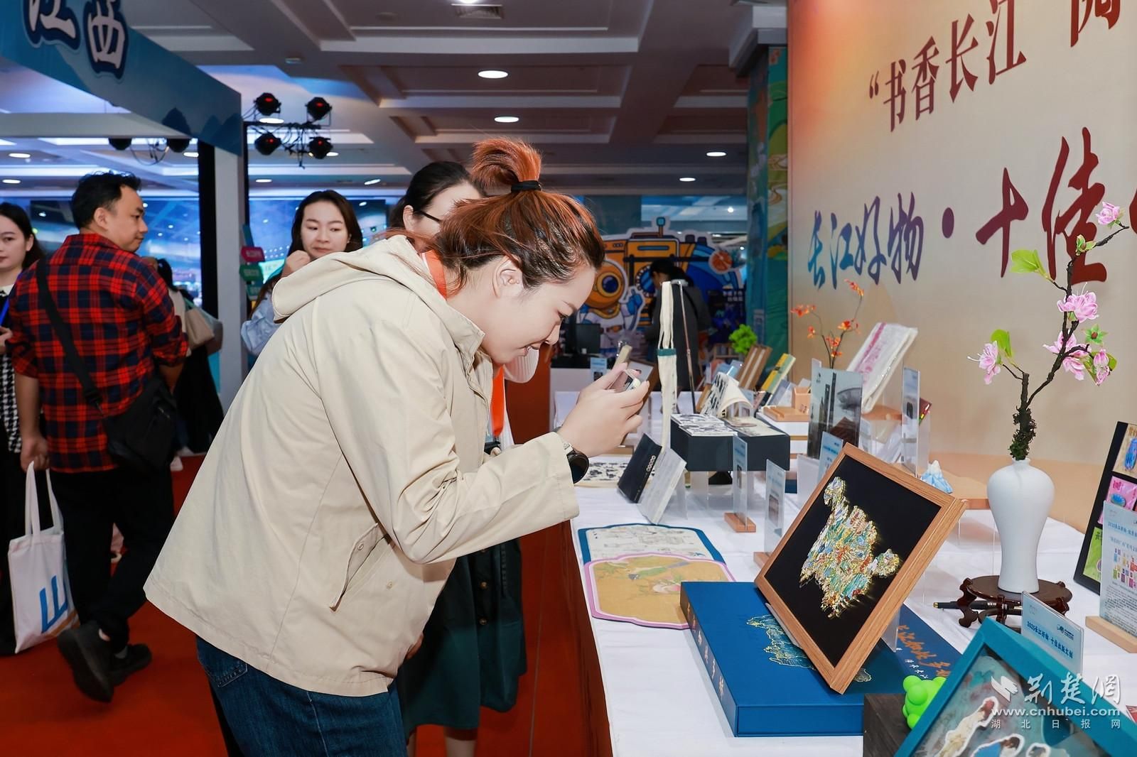 本次武漢書展期間,“長江好物”沉浸式展區(qū)成為熱門打卡地。展區(qū)集中展示八大省館特色文化產(chǎn)品和大學(xué)生大賽獲獎作品,手工互動區(qū)和VR漢字體驗(yàn)項(xiàng)目吸引眾多觀眾參與。觀眾可親手制作文創(chuàng)產(chǎn)品,感受傳統(tǒng)手工藝魅力;也能通過VR沉浸式體驗(yàn)漢字演變,領(lǐng)略中華文化博大精深。