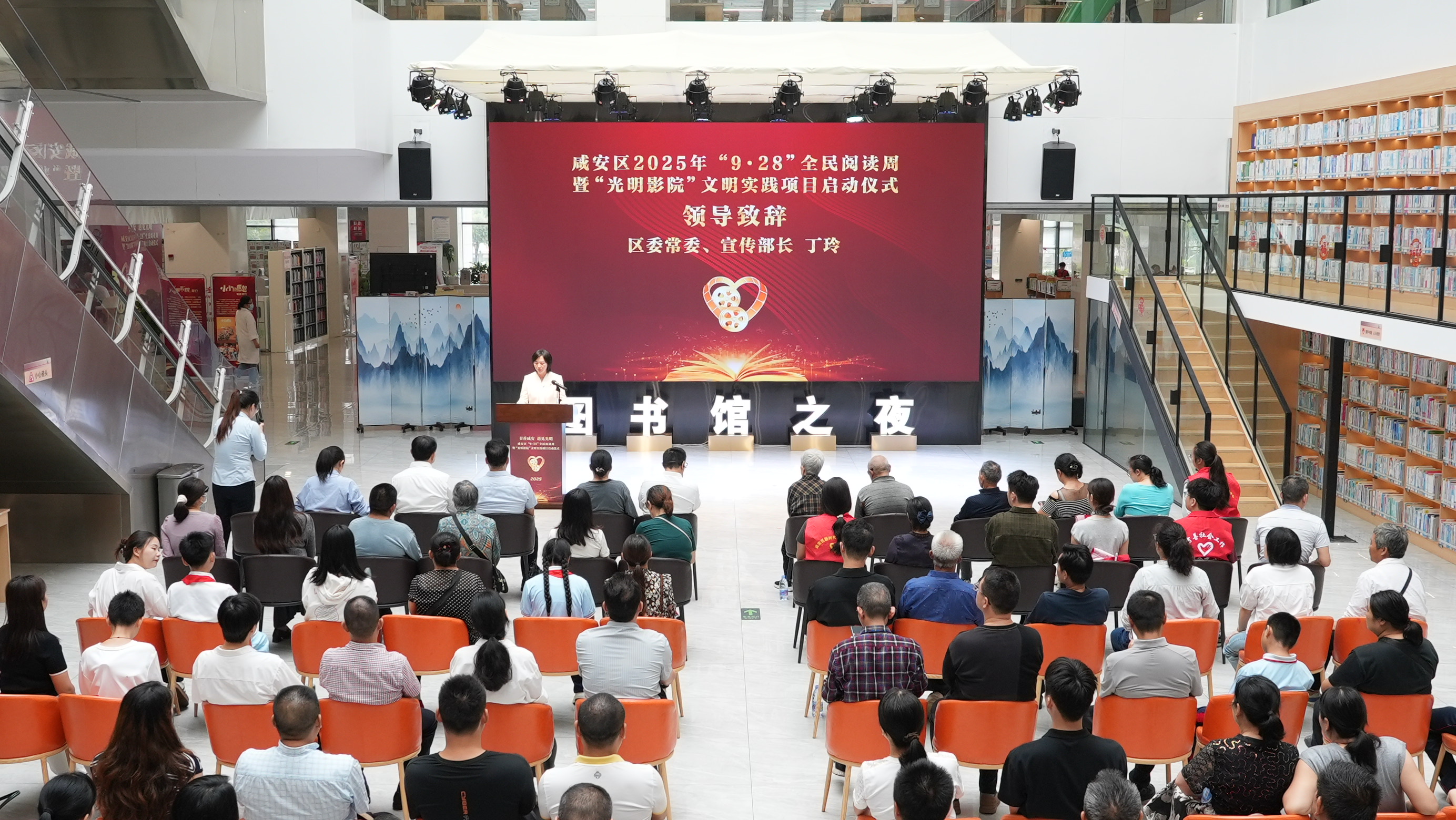 9月28日,咸寧市咸安區2025年“9·28”全民閱讀周暨“光明影院”文明實踐項目啟動儀式在區圖書館舉行,活動以“書香咸安 遇見光明”為主題,營造全民閱讀濃厚氛圍,傳遞城市人文關懷。