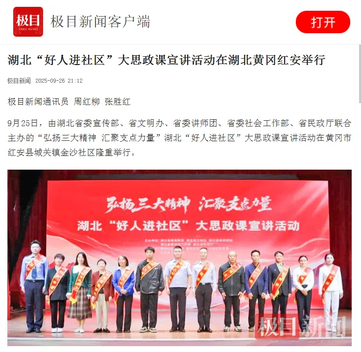 非遺技藝與好人故事在社區交匯,紅色文化與便民服務在街頭相遇。這堂走出機關、走進社區的大思政課,讓道德建設從“說教”變為“體驗”,從“傾聽”轉為“參與”。網友紛紛點贊,表示社區思政課真正實現了“讓精神文明在土壤中扎根生長”的美好愿景。(文明黃岡)