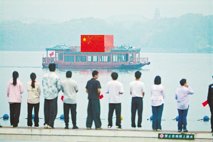 當天清晨,凌波門觀景點早早聚集起千名游客,不少是連夜趕來的外地游客,行李箱在入口處擺放成一長排。“我們凌晨3點多到武漢,就直接打車過來了,沒想到這里還有演唱活動,千帆競發的場面非常壯觀,結束后打算直接去東湖邊的湖北省博物館繼續玩?!蔽靼哺咝W生余同學說。廣東游客梁楚玲則與共和國同天生日,濃厚的節日氛圍讓她不免哽咽:“今年我的農歷生日正好在‘十一’當天,和這么多人一起合唱國歌時,眼睛不免有些濕潤,自豪之情油然而生,在武漢的第一天就收獲了太多驚喜與感動,祝福祖國!”