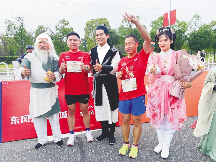 11時(shí)10分,江西跑友夏劍平和熊凌蕓脫下比賽裝束,換上一身漢服,漫步在唐城景區(qū)拍照留念。一場(chǎng)馬拉松,成為他們認(rèn)識(shí)襄陽(yáng)、愛(ài)上襄陽(yáng)的起點(diǎn)。