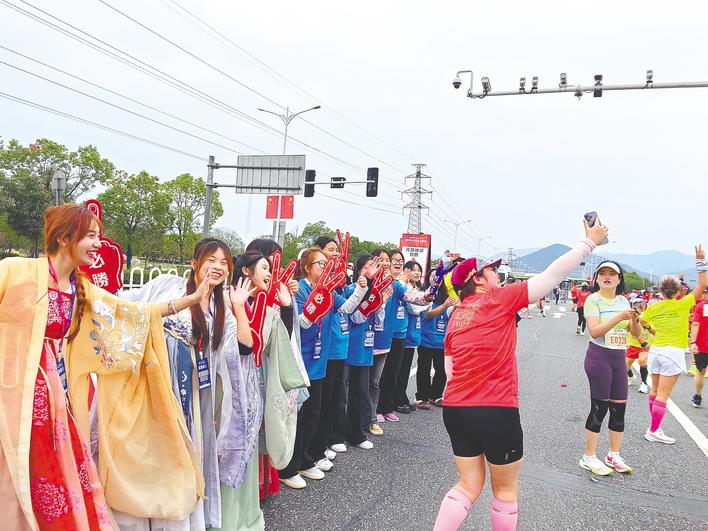 為了這場(chǎng)盛會(huì),整座城市都被動(dòng)員起來(lái)。在賽道沿線,鄧小玲抱著2歲的孫女為選手加油鼓勁,社區(qū)群眾組成的啦啦隊(duì)鑼鼓喧天,企業(yè)員工自發(fā)組織熱情吶喊……湖北文理學(xué)院大四學(xué)生姜東方第二次參加襄馬志愿服務(wù):“希望用我的熱情,讓每一位跑友感受到襄陽(yáng)城市的溫度?!?/p>
