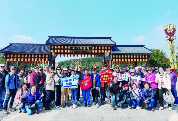 香港游客在荊門園博園合影留念。易榮榮 攝