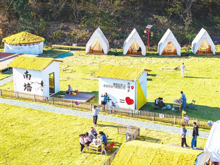 11月22日,英山縣方家咀鄉四棵楓村,游客及市民在碧楓港露營地打卡休閑,樂享冬日時光。近年來,英山縣充分利用鄉村生態資源優勢,以現代文化藝術與傳統田園風光相結合,積極打造集農業休閑、生態游憩、鄉村文化于一體的精品鄉村生態旅游產業,激發鄉村旅游消費新活力。(視界網 王江 攝)
