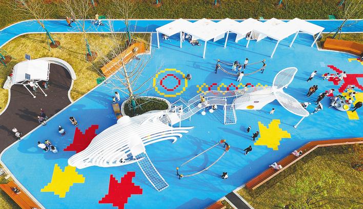 漢口火車站附近,“遠洋鯨奇兒童友好公園”成為新晉頂流。孩子們笑著鉆進巨型鯨魚骨架,從尾鰭滑梯嗖地滑下,歡笑聲在空中回蕩。這里曾經是一片無人問津的荒地。江漢區(qū)瞄準這塊“微空間”,從周邊幼兒園、小學廣泛征集意見,鎖定“海洋”主題進行改造。